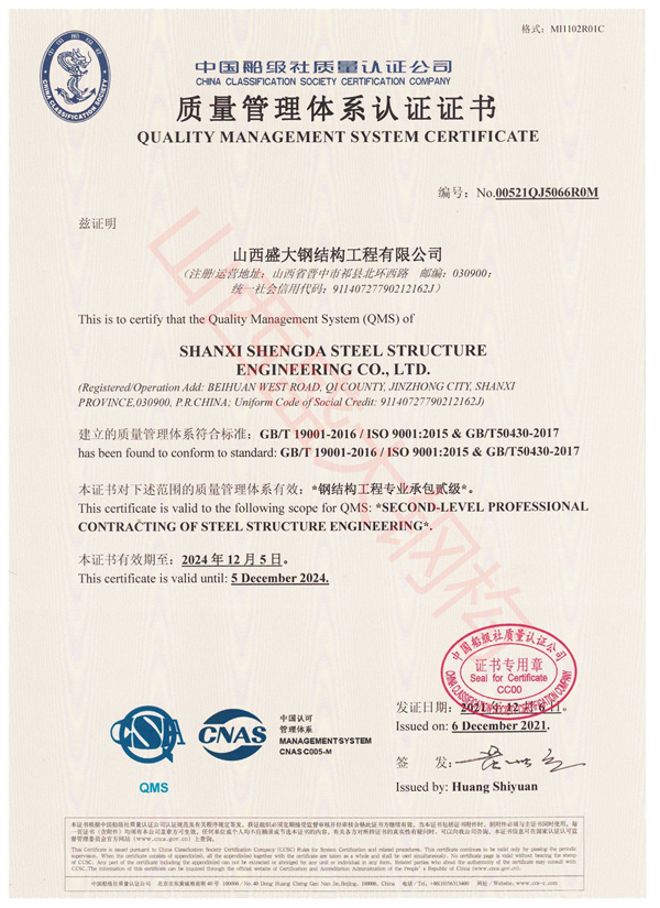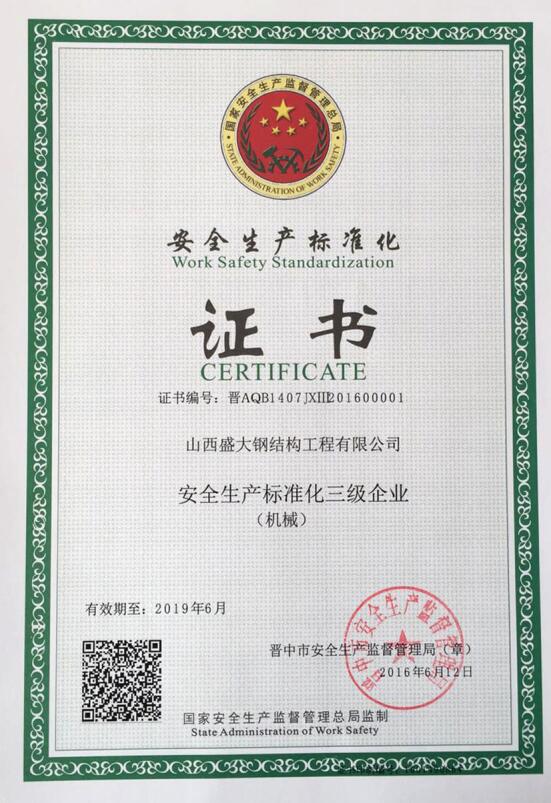 山西盛大鋼結構工程有限公司 山西盛大鋼結構工程有限公司成立于1996年,坐落于國家歷史文化名城——山西祁縣。擁有兩大智能化鋼結構生產基地,占地110畝,建筑面積3萬余平方米,具備鋼結構專業(yè)承包貳級、建筑工程施工總承包貳級資質,是一家集設計、制造、施工于一體的大型鋼結構工程企業(yè)。 盛大鋼構是中國鋼結構協(xié)會會員單位,山西鋼結構協(xié)會副會長單位,山西建筑企業(yè)商會理事單位,山西省土木建筑學會會員單位,擁有國家知識產權局注冊商標。公司已通過ISO9001質量管理體系認證,體系覆蓋鋼結構加工與施工等核心… more +